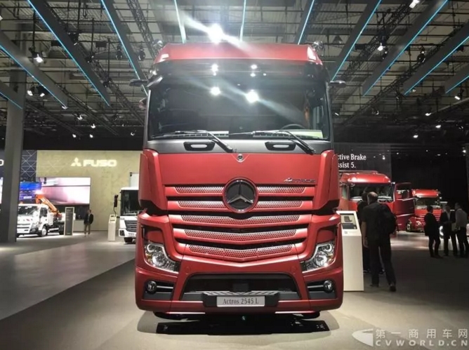 戴姆勒在本屆展會的當家明星,無疑是剛剛發布的奔馳全新Actros重卡。