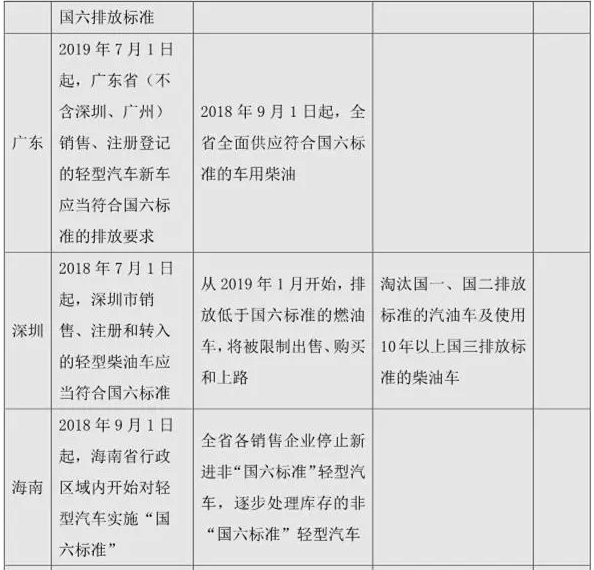 國六實施時間各地大不相同,除了北京一舉跳過國六A階段,在2019年7月重型柴油車直接進入國六B以外,其他各省市基本上都是2019年1月1日起,輕型車實施國六排放標準。